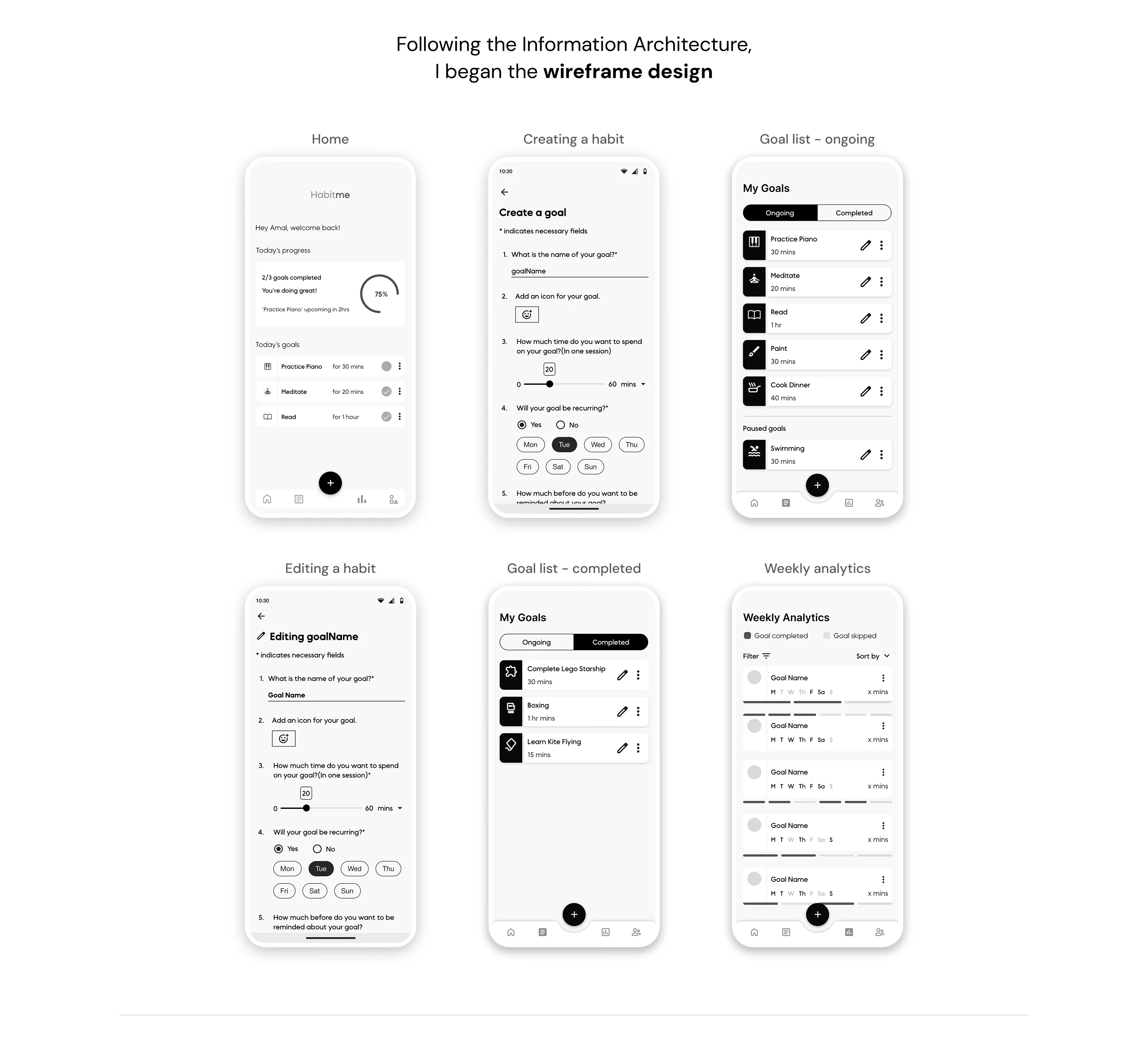 Habit building app design